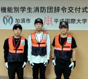 【学生消防団】令和7年度辞令交付式 3名の学生が入団しました。