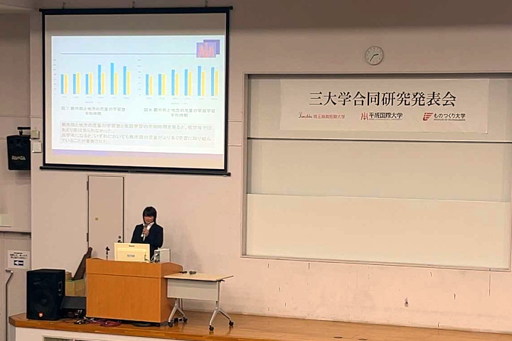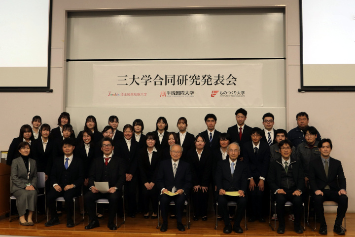 令和7年(2025年)2月10日(月)、「三大学研究合同発表会」が本学102教室にて開催されました。本発表会は、平成30年(2018年)11月9日に締結された「埼玉純真短期大学、平成国際大学及びものつくり大学の連携協力協定」に基づき開催されており、今回で第6回となります。