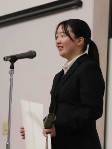 最後に、ものつくり大学・國分泰雄学長より全体講評と、今回よりが創設された「三大学長賞」が発表されました。3大学の学長による協議の結果、栄えある第1回受賞者は、研究「怠けの誤解を超えて ~起立性調節障害に関する学生の認識と教育の重要性~」を発表した本学・スポーツ健康学部4年鹿島芽依さんに決定し、本学・柏木俊彦学長より、賞状と副賞(各大学のグッズ)が授与されました。発表を行った学生たちにも参加賞(各大学のグッズ)が配られました。