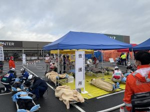 11月17日(金)13時~15時に「令和5年度埼玉県・加須市国民実動訓練」がカインズ大利根店にて行われ、本学「加須市学生消防団」に所属する学生や、公務員を志す学生など18名が参加しました。民間の商業施設では14年ぶりに行われ、大野元裕埼玉県知事、角田守良加須市長をはじめ、消防、警察、自衛隊、病院関係者など約500名が訓練に臨みました。カインズ資材館にサリンが撒かれたという設定にて、本学学生は衣服および靴の除染作業や、軽傷者としてトリアージを受ける訓練を行いました。