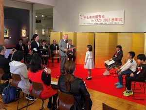11月11日(土)~19日(日)まで平成国際大学附属サトエ美術館では、『第13回こども美術展覧会 in KAZO 2023』が開催され、8日間の会期中に931名の入館者が訪れました。11月14日(火・埼玉県民の日)には表彰式が開催され、小野田誠加須市教育委員会教育長、柏木俊彦学長などが出席され、特別賞受賞者4名を表彰いたしました。