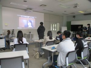 Zoomでさいたま地裁の法廷と大学(6教室)をライブ中継でつなぎ、まず、秋保春菜裁判官(第1刑事部担当)から「裁判員制度」の詳細な解説がありました。法改正により、令和5年から18歳が裁判員として刑事裁判に関わっていくことになったことから、刑事手続や選任要件等についての説明や裁判員となった場合の心掛け等、学生たちは多くのことを学ぶことができました。また、秋保裁判官から、法学部で法律を学んだ先輩として、これから大学4年間を通して法律を学んでいく新入生に向けて、温かいアドバイスがあり、学生たちは法学部に来た意義を再確認することもできていました。そして、この後の質疑応答では、秋保裁判官に向けて、各教室から多くの質問がなされ、非常に活気あふれるものとなっていました。次に、キャリア教育の観点から、さいたま地裁人事課の方から、「裁判所職員の業務説明」もあり、将来裁判所職員を目指す学生は真剣な眼差しで話を聞いており、一昨年本学から裁判所職員に合格した先輩に続けと決意を固めていました。