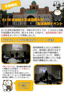 さいたま地裁のHPでも、本学合同企画の実施報告を掲載していただきました。(6/16追記)