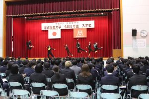 入学式終了後、先輩たちによる新入生歓迎会が行われました。ダンス部のパフォーマンスから始まり、各サークルの紹介、最後は全員でゲームを行い、大いに盛り上がり、親睦を深めました。