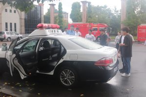実際に使用している消防車両・パトカーの見学や、警察の鑑識体験、消防の防火服の着装体験や救急器材を体験させていただきました。