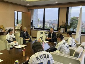 6月22日(木)、加須市役所にて、角田守良市長に、全日本大学女子硬式野球選手権大会優勝の報告を行いました。