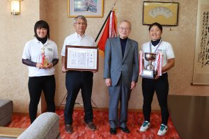 加須市は一般社団法人全日本女子野球連盟から「女子野球タウン」に認定され、女子野球の聖地とも言われています。加須市にある大学が優勝したことについて、角田市長は大変喜んでくれました。また、監督と選手に、祝福の言葉もいただきました。