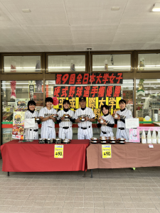 5月26日(金)女子硬式野球部員が、スーパーまるたけ騎西店の店頭にて「アスメシ丼」販売のお手伝いを行い、大勢のお客様に購入してもらいました。