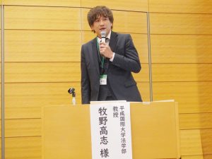 このシンポジウムには、多くの国会議員・地方議会議員や、一般190名の方々が参加し、YoutubeにもLIVE配信されました。牧野教授は、「法律面からみた緊急一時保護制度」について発表をしました。この詳しい内容は、講義の中でも解説するそうです。