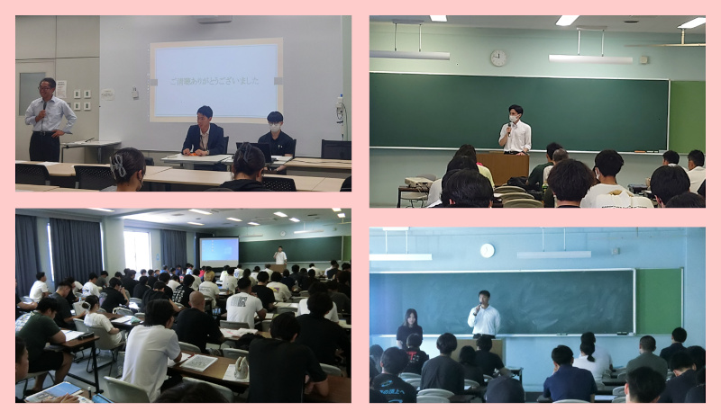 内容はいずれも、平成国際大学から公務員(警視庁、埼玉県警、東京消防庁、久喜市役所など)となった先輩方が来校し、公務員を目指す学生たちに対して、公務員の業務内容や学生時代にどんな勉強をして公務員という夢への切符を手にしたかについて話して下さるというものでした。