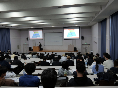 また、1年生を対象としたブラックバイトに関する講座(記事)、法学部2年生向けのインターンシップ体験ワークショップ、スポーツ健康学部2年生を対象としたスポーツ関連業界の紹介講座など、学年・学部の特性に応じたプログラムも同時開催されました。