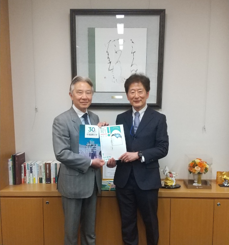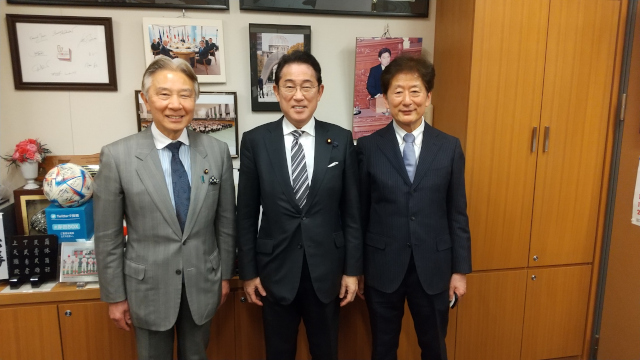 令和8年(2026年)4月7日、情報デザイン学部の長谷部学部長が、衆議院議員会館に岸田元首相、盛山元文部科学省大臣を訪問し、情報デザイン学部の新設を報告しました。 両先生からは、AI/DXの新たな時代の要請に対応した素晴らしい取り組みだとの激励をいただきました。併せて、佐藤栄学園が傘下に、本学ばかりでなく、栄東中学・栄東高校をはじめ多くの教育機関を抱えていることに深く感銘を受けられていました。