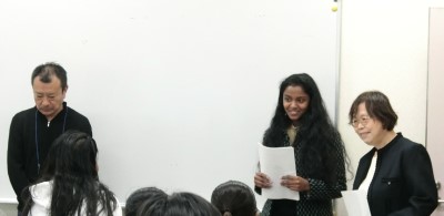 教員および事務員から、通訳を交えつつ自己紹介が行われ、続いて新入生一人ずつより自己紹介がありました。