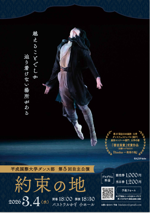 本学ダンス部による第5回自主公演「約束の地」が3月4日、バストラルかぞ小ホールにて開催されました。