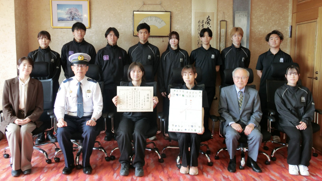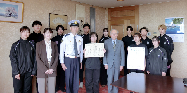 令和8年(2026年)4月24日、本学ダンス部が埼玉県加須警察署長より感謝状と記念品を授与されました。