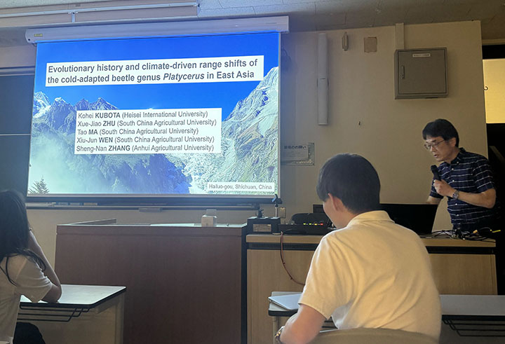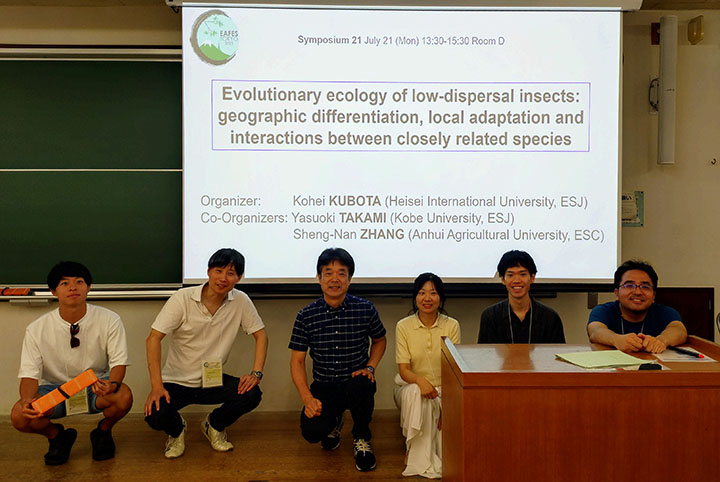 本学の久保田耕平教授(法学部)が、2025年7月19日(土)~21日(月)にかけて東京大学弥生キャンパスで実施された東アジア生態学会連合大会(EAFES 2025)に出席し、大会期間中の7月21日(月)に、国際シンポジウム「低移動性昆虫の進化生態学:地理的分化、局所適応、近縁種間の相互作用(Evolutionary ecology of low-dispersal insects: geographic differentiation, local adaptation and interactions between closely related species