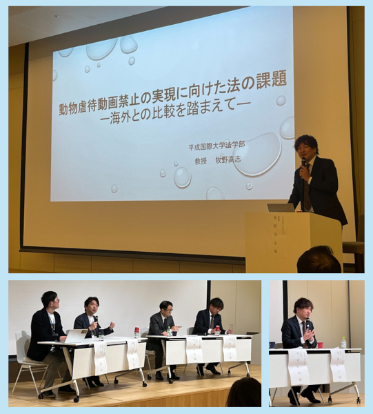 法学部の牧野高志教授が、12月7日(日)に神戸市で開催されたシンポジウムに登壇し、「動物虐待動画禁止の実現に向けた法の課題ー海外との比較を踏まえて―」というテーマで講演をしました。講演後には、パネルディスカッションに参加し、市民から寄せられた多くのご質問にも答えていきました。