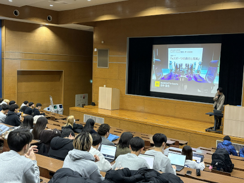 令和8年(2026年)1月9日(金)3時限目、スポーツ健康学部開設科目『eスポーツと心の健康』の講義にて、NTT e-Sportsの田中進也氏をお迎えして特別講義が行われました。