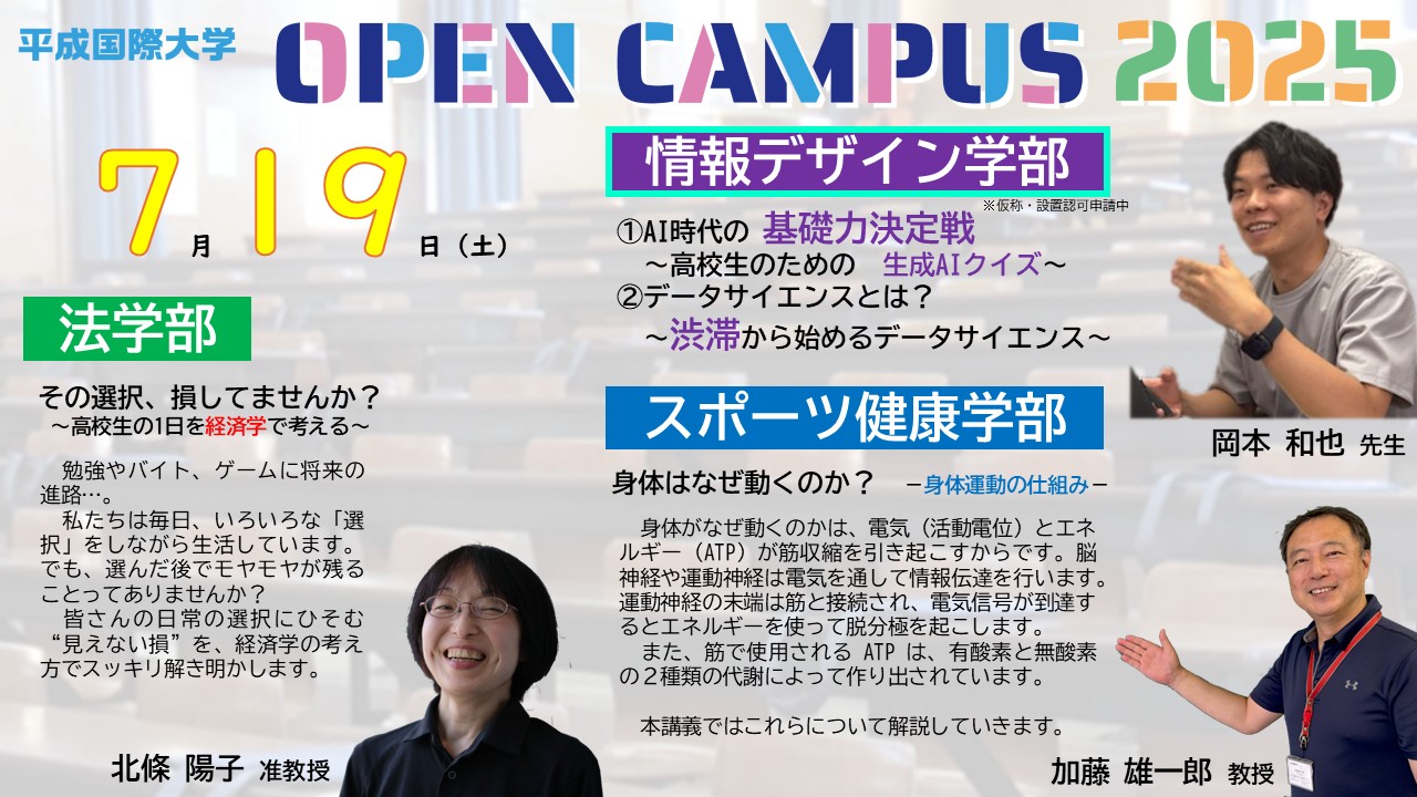 平成国際大学では、7月19日(土)にオープンキャンパスを実施します。