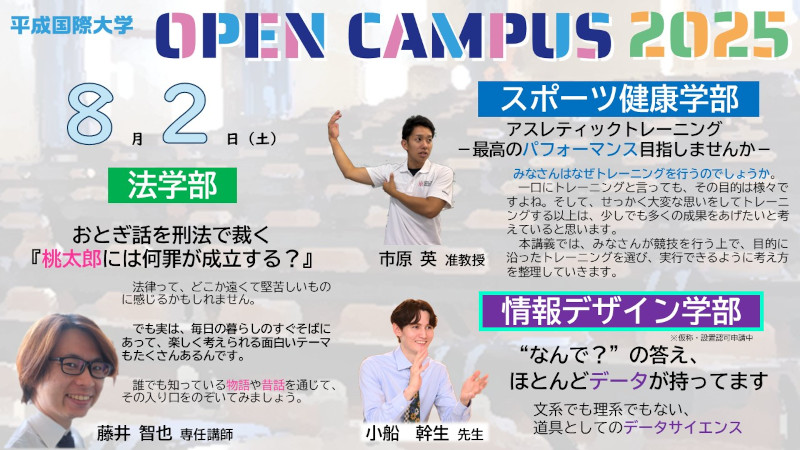 平成国際大学では、8月2日(土)にオープンキャンパスを実施します。