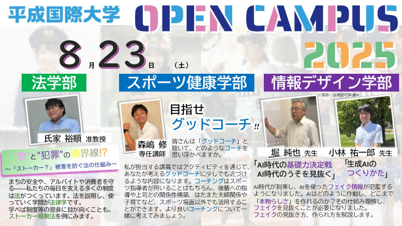 平成国際大学では、8月23日(土)にオープンキャンパスを実施します。