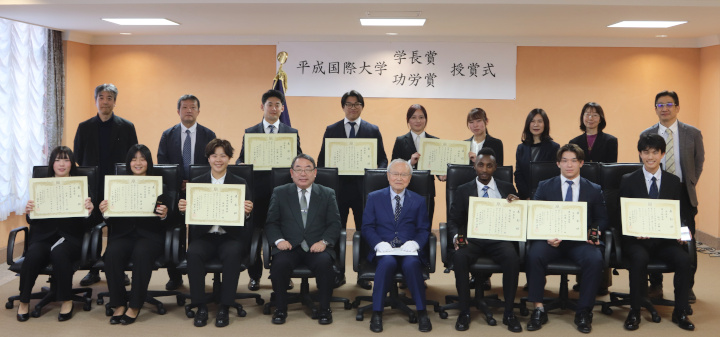 学生諸活動の顕著な功績を表彰する「令和7年度学長賞」および「功労賞」の表彰式が、令和8年1月22日(木)、本学迎賓特別ルームにて行われました。