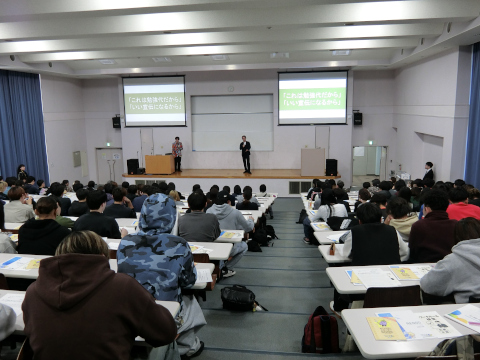 令和7年(2025年)12月9日、日本労働組合総連合会(連合)と共催で、平成国際大学法学部及びスポーツ健康学部の1年生を対象に、学生向けワークショップ「ブラックバイトに気をつけて!~ワークルールを学んで社会へ羽ばたこう~」を実施しました。今年で2回目の取り組みです。