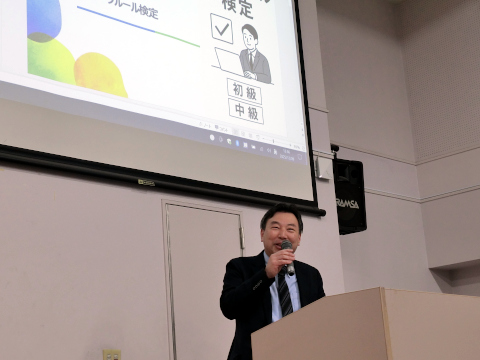 また、連合より、労働組合の活動やワークルールについて説明され、さらにスマートフォンで回答できるワークルールに関するクイズ(計4問)が行われ盛り上がりました。また、司会の小林准教授からは、平成国際大学におけるアルバイトの状況とワークルールについて説明されました。